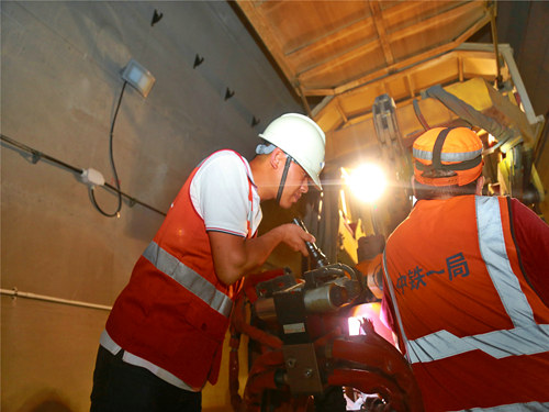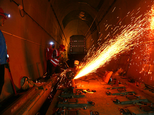 (譚帥)7月6日清晨7時(shí)許,在渝懷鐵路涪秀二線在建的新大田坳隧道里,隨著一臺(tái)移動(dòng)閃光焊軌機(jī)噴出的一道道火花,兩根長(zhǎng)500的鋼軌牢牢地焊接到了一起,標(biāo)志著該條鐵路涪陵至中嘴段無縫線路焊軌、鎖定施工接近尾聲。