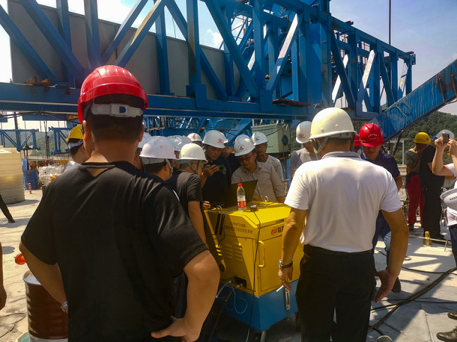 7月17日上午,懷邵衡鐵路公司、益陽建設(shè)指揮部組織常益長鐵路全線的施工、監(jiān)理單位共80余人在中鐵十一局常益長鐵路6標(biāo)項目部召開自動張拉系統(tǒng)軟件漏洞修補(bǔ)驗證會,該項目部連續(xù)梁智能張拉施工受到與會人員一致好評。