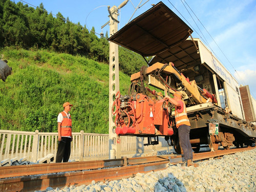 據中鐵一局鋪架項目部負責人陳福俊介紹,涪陵至中嘴段鐵路全長83.06公里,共含6站5區(qū)間,施工多數為橋隧相連地段。自3月27日全線正式開始焊軌作業(yè)以來,項目部面臨著工期節(jié)點緊張,作業(yè)場地分散,焊機頻繁調頭,夏季高溫多雨等一系列困難。