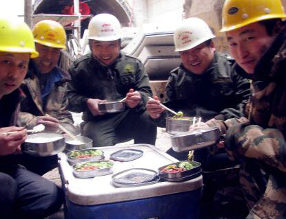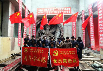 萬事俱備,大干風(fēng)起云涌!由項(xiàng)目書記朱月根、盾構(gòu)一隊(duì)書記劉桂忠?guī)ьI(lǐng)的“黨員突擊隊(duì)”;陳石、槐景博、汪浩帶領(lǐng)的“青年突擊隊(duì)”盡展風(fēng)采。盾構(gòu)機(jī)始發(fā)后,朱月根、劉桂忠并成了“后勤保障部長”,他們將形之有效的思想政治工作送到職工宿舍、施工現(xiàn)場,把職工的精神氣兒提振得烘熱高漲。