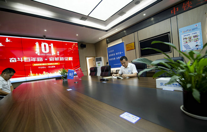 中鐵三局線橋公司第五分公司黃黃項(xiàng)目“迎七一”主題黨日講好黨課增動(dòng)力活動(dòng)現(xiàn)場胸懷赤誠寫擔(dān)當(dāng)