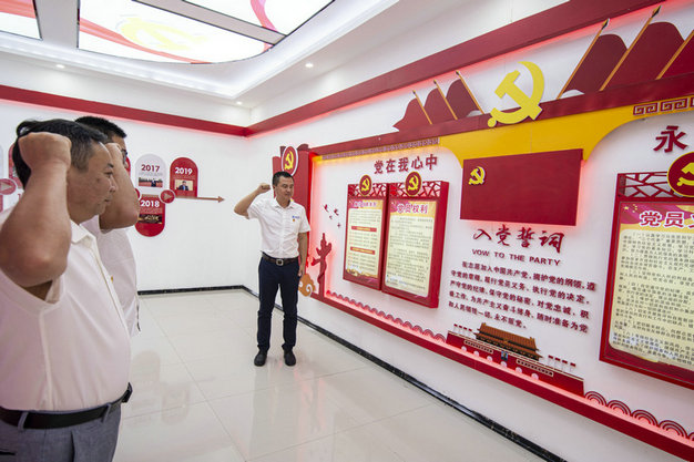 心中有信仰,腳下有力量。“慶‘七一’、鑄忠誠”為黨的生日獻(xiàn)禮活動(dòng)在一句句鏗鏘有力的入黨誓詞中拉開序幕,項(xiàng)目全體黨員面向鮮紅的黨旗高舉右拳,字字鏗鏘心向黨莊嚴(yán)宣誓,接受黨性教育、重溫入黨誓詞、觀看黨員教育專題片等活動(dòng),教育引導(dǎo)廣大黨員進(jìn)一步堅(jiān)定理想信念,提高黨性修養(yǎng)。