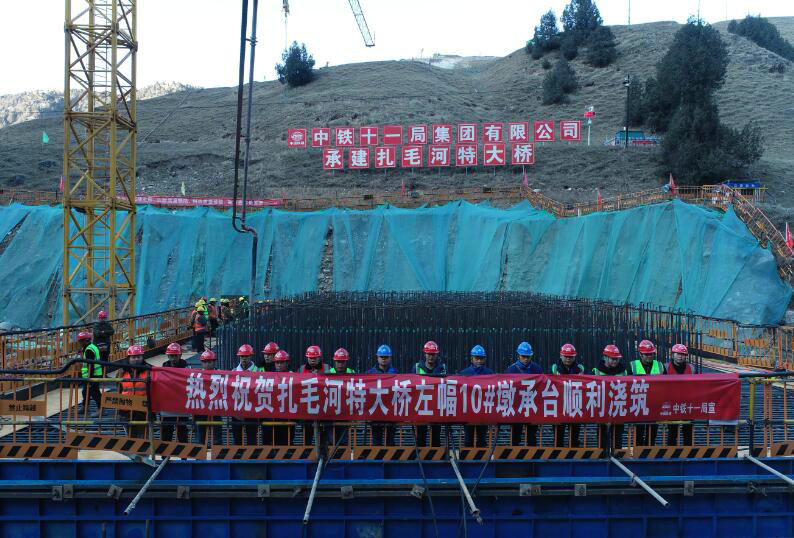 11月7日5時(shí)40分,中鐵十一局同賽項(xiàng)目的建設(shè)者們歷經(jīng)38小時(shí)的連續(xù)奮戰(zhàn),隨著最后一方混凝土的注入,扎毛河特大橋左幅10#墩承臺(tái)澆筑完畢,標(biāo)志著項(xiàng)目施工取得了階段性勝利,為扎毛河特大橋后續(xù)墩身施工建立了堅(jiān)實(shí)的基礎(chǔ)。