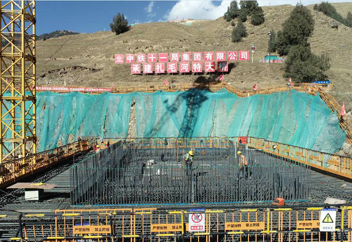 同仁至賽爾龍(青甘界)高速公路起點(diǎn)位于同仁市郭麻日新村東側(cè),接已建成的牙什尕至同仁高速公路,經(jīng)同仁市、澤庫(kù)縣、河南縣,終點(diǎn)位于賽爾龍鄉(xiāng),由公司承建的同賽公路1標(biāo)項(xiàng)目全長(zhǎng)1.849公里,平均每公里造價(jià)2.27億元,主要工程包括:扎毛河特大橋1.06公里,樁基136根、圓柱墩20個(gè)、薄壁空心墩13個(gè)、預(yù)制箱梁108片;瓦浪隧道0.56公里;路基0.202公里、挖方27萬(wàn)方、填方3萬(wàn)方。項(xiàng)目橋隧占比高達(dá)87.6%,且具有高寒高海拔、高墩大跨、生態(tài)環(huán)境脆弱、施工難度大等特點(diǎn)。