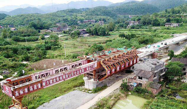 中鐵十八局集團重黔高鐵6標移動模架橋梁施工現(xiàn)場( 田緣圓 攝)
