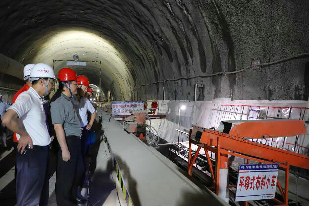 中鐵十八局集團(tuán)重黔高鐵6標(biāo)隧道施工平移式布料小車、邊墻防水板鋪掛平臺觀摩(孔凡虎 攝)