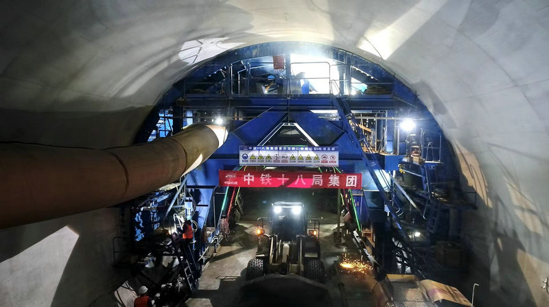 中鐵十八局集團(tuán)隧道公司負(fù)責(zé)施工的渝湘高鐵重慶至黔江段站前6標(biāo)李家灣1號(hào)隧道貫通現(xiàn)場(chǎng)(田緣圓 攝)