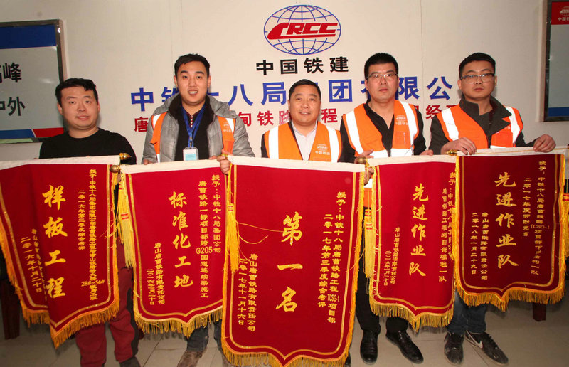 6、中鐵十八局集團(tuán)五公司建筑公司建設(shè)者展示唐曹鐵路取得的業(yè)績(伍振 李學(xué)彬攝)