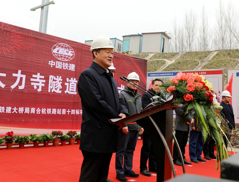 在稍早舉行的貫通儀式上,巢湖市常務(wù)副市長(zhǎng)夏群山在發(fā)言中對(duì)新大力寺隧道貫通表示了祝賀,對(duì)中鐵建大橋局建設(shè)者多年來(lái)對(duì)巢湖經(jīng)濟(jì)社會(huì)發(fā)展所做貢獻(xiàn)給予高度評(píng)價(jià);集團(tuán)公司工管中心主任兼項(xiàng)目經(jīng)理王濤、三公司總經(jīng)理周冠南分別在講話中對(duì)建設(shè)者的辛勤付出表示了感謝;最后集團(tuán)公司副總經(jīng)理吳煥通宣布新大力寺隧道正式貫通。