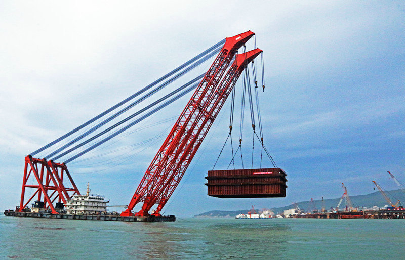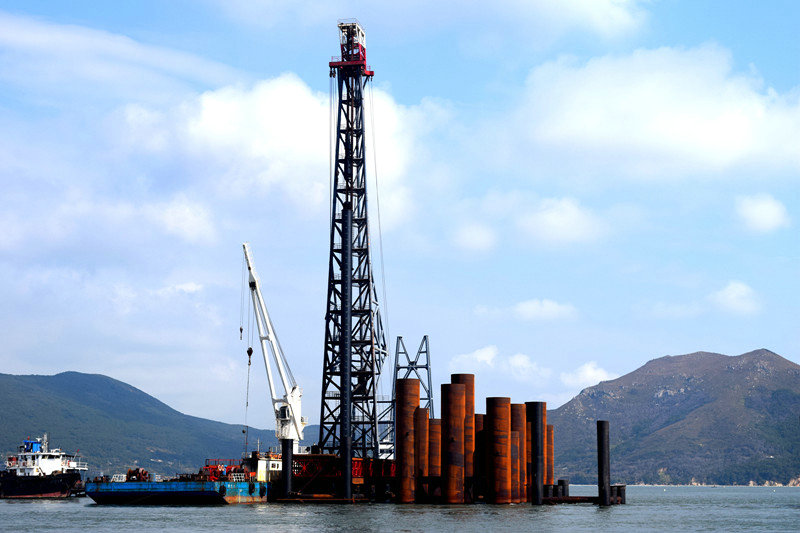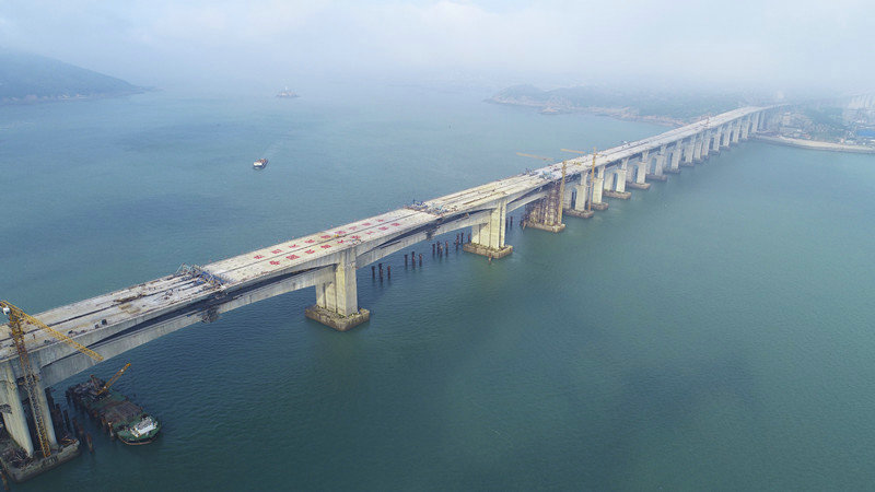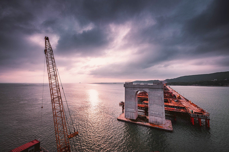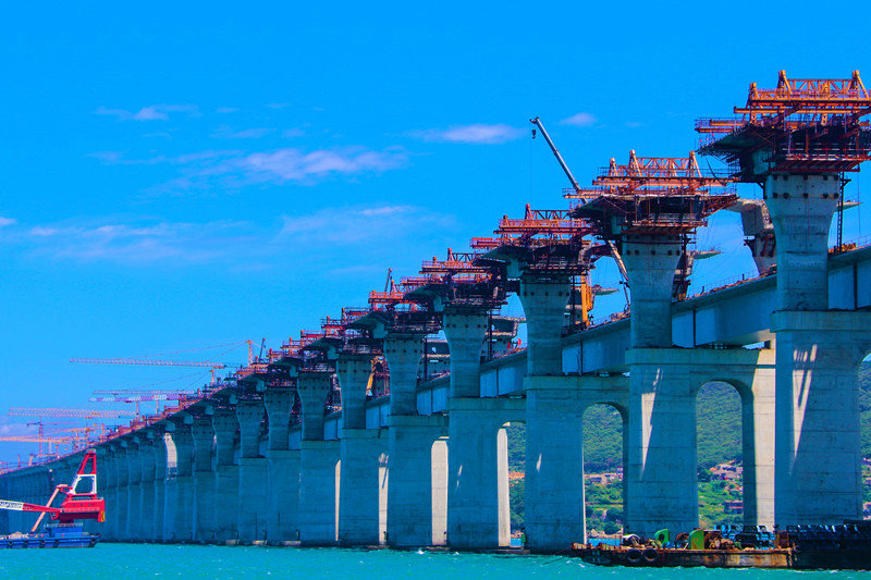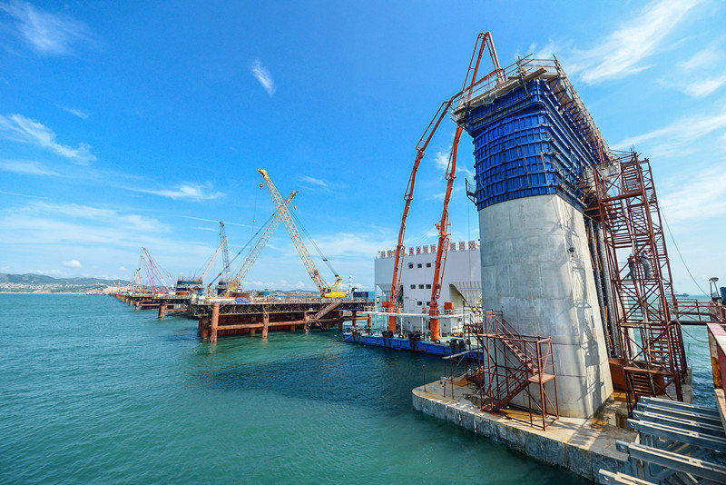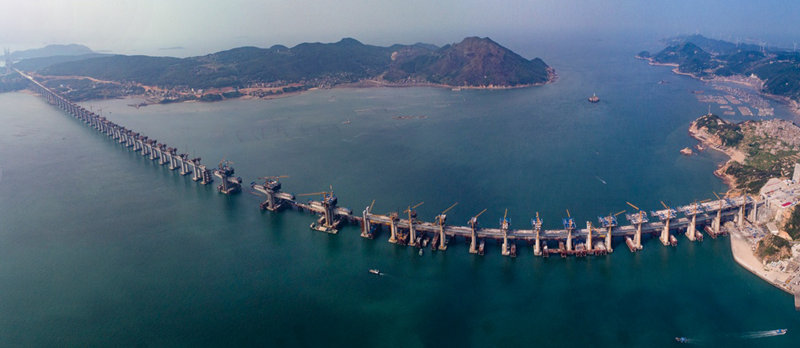 面對(duì)惡劣的海況,建設(shè)者沒有畏懼,以科技創(chuàng)新為手段,攻堅(jiān)克難,最終圓滿完成使命。截至2019年7月,中國鐵建大橋工程局集團(tuán)依托該項(xiàng)目已獲得科技進(jìn)步獎(jiǎng)9項(xiàng)、工法19項(xiàng)、授權(quán)專利21項(xiàng)、其中9項(xiàng)為發(fā)明專利、QC成果3項(xiàng)、核心期刊發(fā)表論文近40篇。在全體參建者的共同努力下,成功攻克了“國內(nèi)首臺(tái)臺(tái)風(fēng)區(qū)雙控連做造橋機(jī)”“深水裸巖組合平臺(tái)的搭設(shè)與穩(wěn)固”“深水裸巖大跨長距重載棧橋的搭設(shè)”“大噸位整體鋼吊箱設(shè)計(jì)與施工”“臺(tái)風(fēng)區(qū)碼頭與后場配套設(shè)計(jì)與施工”等多項(xiàng)技術(shù)難題。