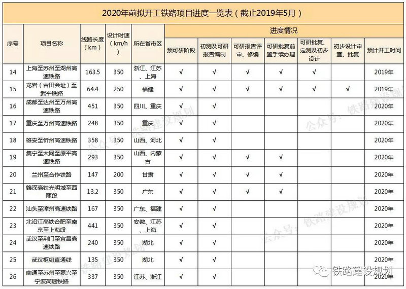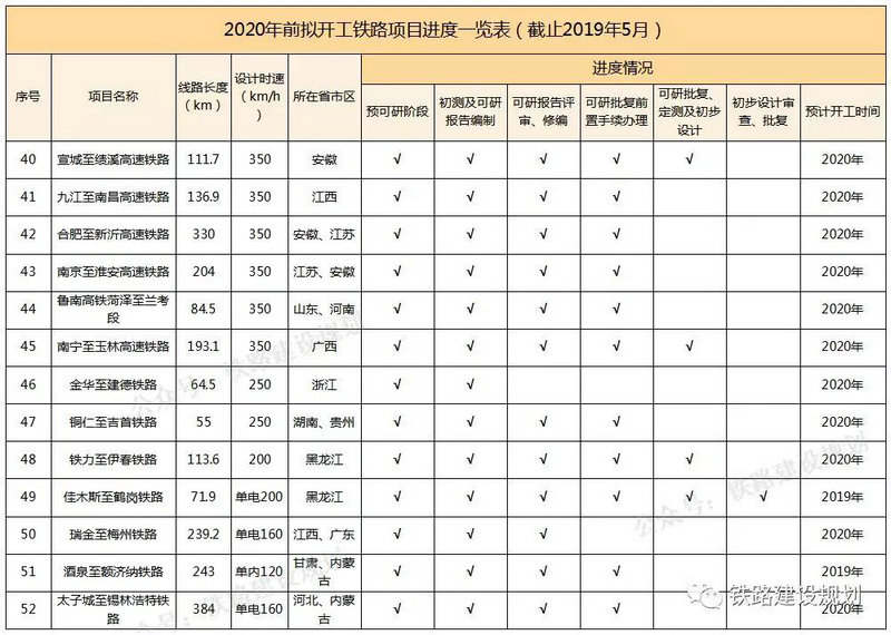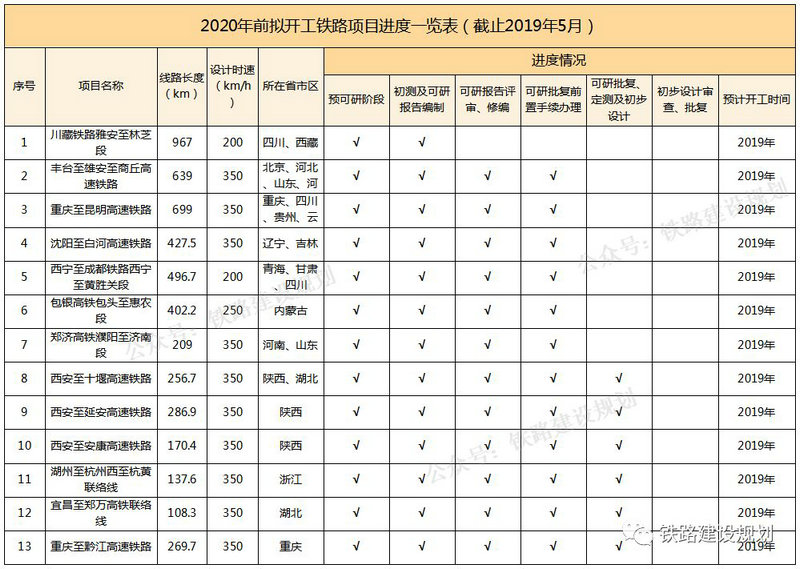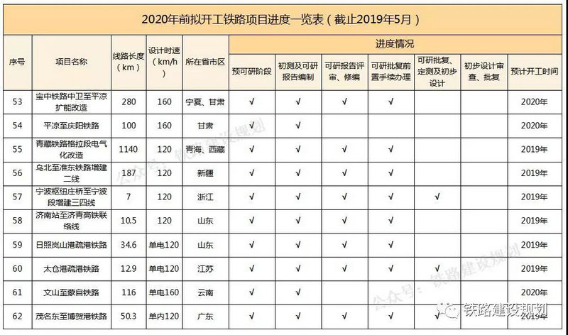 2020年前擬開工鐵路項目進(jìn)度一覽表