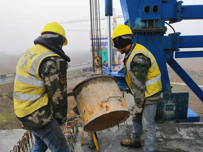 元旦過后,濟(jì)寧地區(qū)也迎來(lái)新年初雪。從1月5日下午便開始落雪,白雪皚皚給大地披上了銀裝,也給工地上那兩套鋼鐵巨獸般的運(yùn)架設(shè)備添上一層厚厚的羽絨棉被。颯颯的風(fēng)雪聲中冬季的濟(jì)寧分外凜冽,在零下十多度的嚴(yán)寒中,為護(hù)航高鐵暢通,分部員工沒有絲毫松懈。元月初此時(shí)正值魯南高鐵項(xiàng)目實(shí)現(xiàn)年度架梁目標(biāo)最后奮起一躍的時(shí)刻,為在春節(jié)前順利完成年度箱梁架設(shè)任務(wù),項(xiàng)目部全體員工凝聚在“全力以赴保安全、爭(zhēng)分奪秒保進(jìn)度、排除萬(wàn)難保質(zhì)量”的信念下,寒冬臘月不停歇,堅(jiān)守崗位,頂著數(shù)九寒天的凜冽寒風(fēng),齊心協(xié)力打響春節(jié)前箱梁架設(shè)攻堅(jiān)戰(zhàn)。