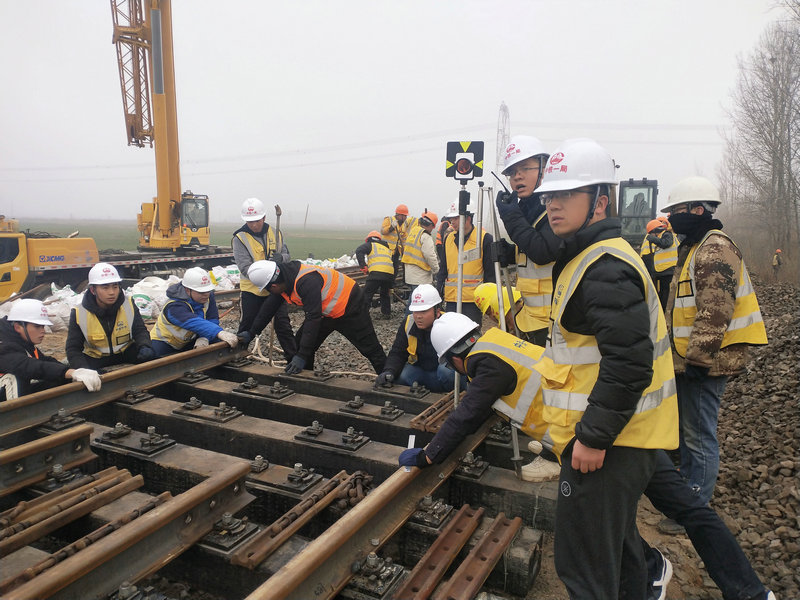 12月17日,魯南高鐵項(xiàng)目鋪軌基地聯(lián)絡(luò)線與梁寶寺煤礦專用鐵路接軌施工,天氣寒風(fēng)刺骨,像針一樣穿透心靈,這鬼天氣,路邊的行人已經(jīng)絕跡了,飛鳥,走獸,消失的無(wú)影蹤。經(jīng)過現(xiàn)場(chǎng)90人240分鐘的奮戰(zhàn),魯南高鐵項(xiàng)目鋪軌基地順利完成梁寶寺煤礦專用鐵路插鋪無(wú)尖軌道岔施工任務(wù)。數(shù)九寒天,施工現(xiàn)場(chǎng)陣陣朔風(fēng)透骨寒,作業(yè)人員穿戴齊全,按照事先分配好的工作密切配合,有條不紊的完成各道工序,拆軌裝軌、勻砟整修,整個(gè)施工過程,全體作業(yè)人員發(fā)揮了路橋人特有的能吃苦,能戰(zhàn)斗,能奉獻(xiàn),能打硬仗的工作作風(fēng),以實(shí)際行動(dòng)出色的完成了道岔插鋪任務(wù)。