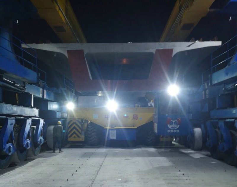 小里程方向架梁任務(wù)順利完成后,需要對(duì)架橋機(jī)進(jìn)行轉(zhuǎn)體調(diào)頭作業(yè),繼續(xù)完成大里程方向箱梁架設(shè)。運(yùn)架設(shè)備轉(zhuǎn)體調(diào)頭耗時(shí)耗力,項(xiàng)目部組織夜晚值班人員雙班倒,最大程度降低設(shè)備調(diào)頭時(shí)間。漆黑的夜里刺骨的風(fēng),穿著臃腫包裹嚴(yán)嚴(yán)實(shí)實(shí)的夜間作業(yè)人員在搖曳的燈光下隨著運(yùn)架設(shè)備緩緩向著梁場(chǎng)方向返回,三九嚴(yán)寒,滴水成冰。凌晨4時(shí),運(yùn)架設(shè)備在經(jīng)過18個(gè)小時(shí)的長(zhǎng)途跋涉下順利返回梁場(chǎng)。此時(shí),在場(chǎng)的所有人雙眼都充滿了血絲,這些寒夜中的身影,雖然被凍得瑟瑟發(fā)抖,依然沒有絲毫懼色,而是堅(jiān)持到底。參與值班員工在零下十幾度的天氣中加班加點(diǎn),超負(fù)荷工作。以忘我的精神、飽滿的熱情、高昂的斗志,全面加快架梁施工進(jìn)度。