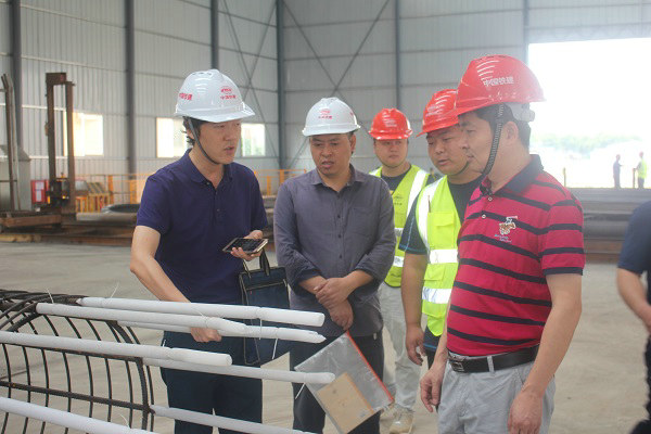 鄧林義(左2)在檢查鋼筋籠質(zhì)量