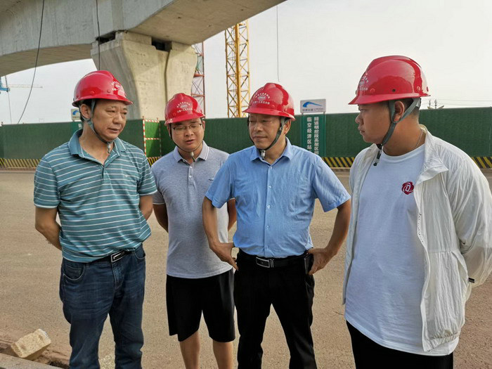 殷盛林(左一)陪同項目經(jīng)理郭雁(右二)檢查工地冥冥之中也許是機緣巧合,與觀音菩薩同一天生日、慈眉善目的殷盛林把修橋鋪路,當成積德行善和一生的事業(yè)來干。他帶領一幫民工兄弟以誠信開路,先做人,后做事。他在團隊管理中,融入中國鐵建先進的企業(yè)文化,秉承中國鐵建“誠信,創(chuàng)新永恒;精品,人品同在”的企業(yè)價值觀,干出了一項項優(yōu)質(zhì)工程,在業(yè)內(nèi)享有良好的口碑,工程源源不斷。他干一行,愛一行,專一行,精一行,他的團隊尤其在連續(xù)梁施工中技藝精湛,獨樹一幟,成為了行業(yè)翹楚。