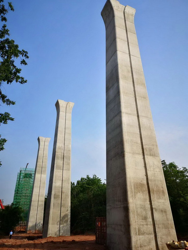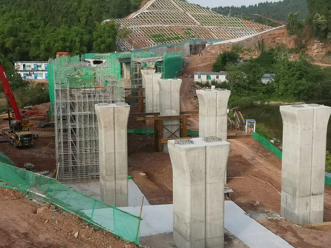 墩身封頂后,在連續(xù)三跨連續(xù)梁施工中,殷盛林在項(xiàng)目部指導(dǎo)下,精心組織橋梁上部結(jié)構(gòu)0號塊和節(jié)段施工。0號段混凝土方量較大,梁體高達(dá)10米,混凝土體積大,預(yù)應(yīng)力管道密集于梁頂板和腹板,預(yù)留孔道多,鋼筋密集,混凝土圬工邊角、倒角多,對混凝土振搗有較大難度。面對施工難題,殷盛林總是能以過人的智慧和豐富的施工經(jīng)驗(yàn)加以解決。