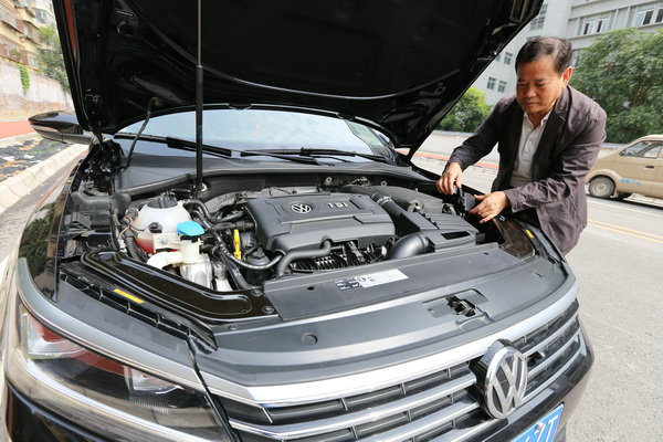 引擎蓋內(nèi)也是一塵不染,圖為老霍檢查發(fā)動機(jī)。