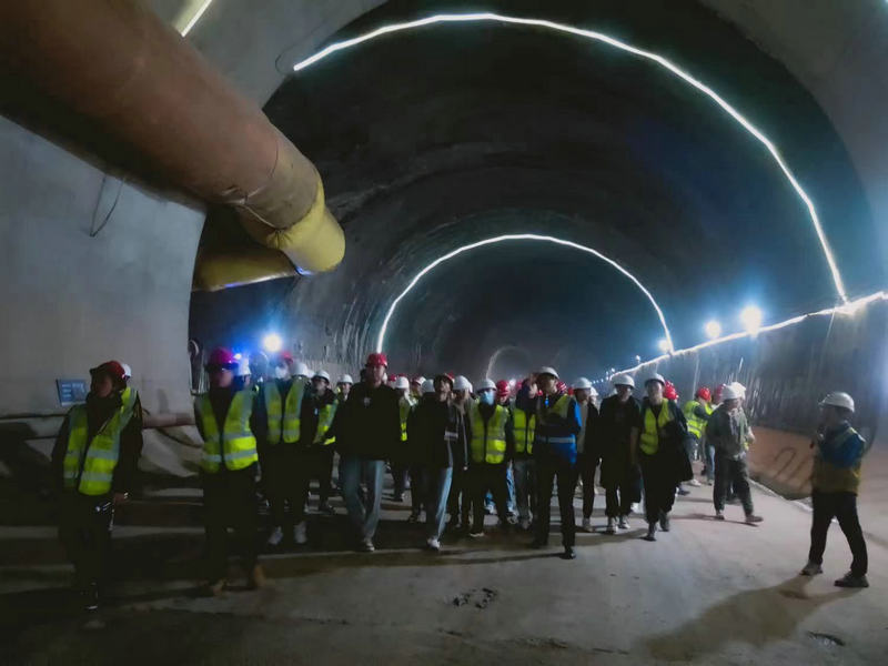 項目部施工的中梁山隧道進口第11次迎來百人觀摩團,圖為3月11日重慶交通大學隧道及軌道工程系大學生在中梁山隧道進口觀摩