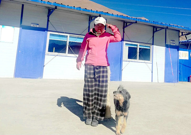透過(guò)車(chē)窗,我再看一眼“這朵雪域高原的格桑花”——個(gè)子不高,穿著一條類(lèi)似藏袍的裙子,一張略有“高原紅”的臉,她在向我揮手道別,項(xiàng)目部養(yǎng)的那條狗緊緊跟在她的身旁,它也在不停地?fù)u著尾巴……