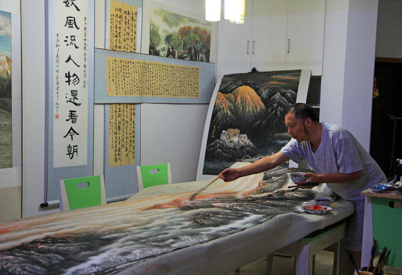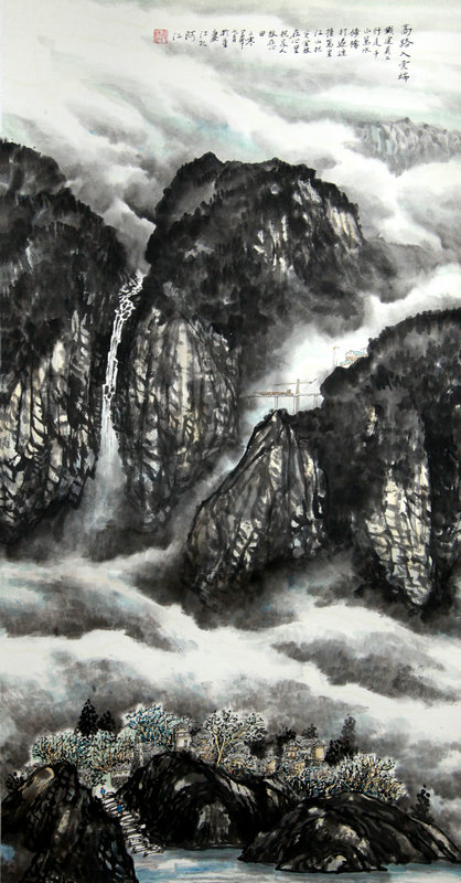1989年的一天,我看到工會(huì)關(guān)于組織收集第九屆大路畫展作品的通知后,決定躍躍欲試,并精心準(zhǔn)備了一幅山水畫,通過工會(huì),到上級工會(huì),再轉(zhuǎn)到北京。但許久以后,卻收到了退回的作品,這是我對大路畫展最初的認(rèn)知,是那么遙遠(yuǎn)、那么深不可測。但從那以后,我不僅沒有打退堂鼓,反而更增添了畫畫的信心和決心,和廠里其他幾個(gè)愛好者一起,報(bào)考了西南師范大學(xué)美術(shù)專業(yè)的自學(xué)考試,打那以后的無數(shù)個(gè)日日夜夜里,我們一群年輕人奮戰(zhàn)在畫板前、宣紙邊,汗水與驕陽、毛筆與彩墨,大家沉浸于五顏六色的歡樂和痛苦之中。終于,一份付出、一份收獲,三年之后,相繼拿到了美術(shù)專業(yè)的學(xué)歷證明,并從此走上了一條多彩的大路。