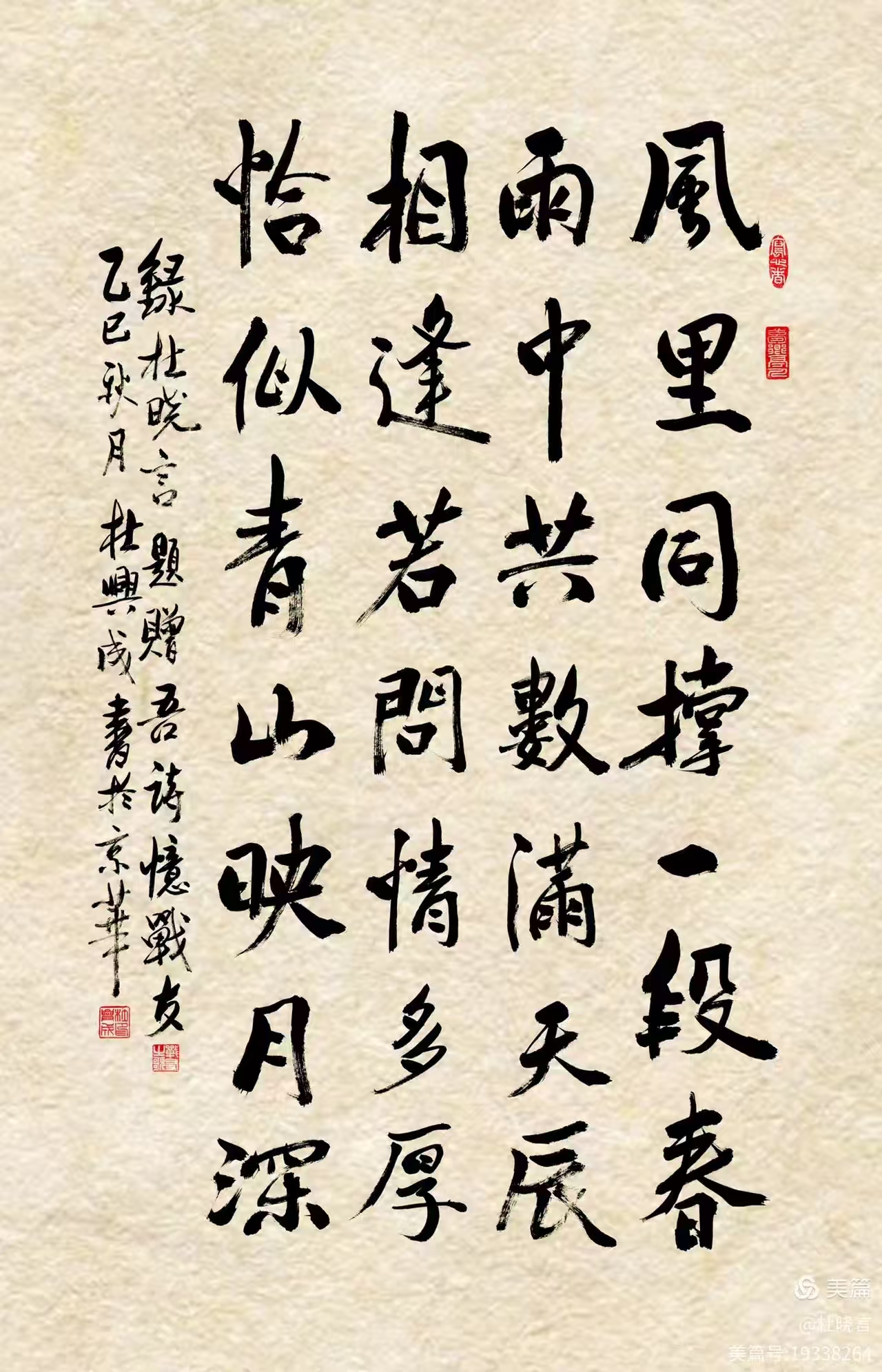 ——記經(jīng)典軍旅歌曲《戰(zhàn)友之歌》著名詞曲作家杜興成兄贈(zèng)書法