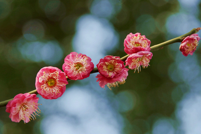 早春二月,北方有時(shí)天上還飄著雪花,甚至是鵝毛大雪,冬天下的雪還沒(méi)消融,地凍三尺,不管走到哪里,環(huán)顧四周,光禿禿一片荒涼,即使種植小麥的田野里,一兩寸高的小麥苗在寒風(fēng)中被凍的瑟瑟發(fā)抖,趴在地上不敢動(dòng)彈。西北風(fēng)卷著枯枝敗葉漫天飛舞,所到之處塵煙彌漫,不可一世,人們叫苦不迭。而地處南方的海濱城市寧波便不一樣了,年前還冷得縮手縮腳,羽絨服加身還感覺(jué)不暖和,年后天氣突然轉(zhuǎn)暖,鮮艷欲滴的白色、粉色、紅色的梅花一夜之間開(kāi)遍城市大街小巷、公園、生態(tài)園,開(kāi)遍農(nóng)村的庭院、田間地頭,十分耀眼。春節(jié)期間,人們穿著時(shí)尚的衣服,三三兩兩、一群一伙地出現(xiàn)在公園、植物園、生態(tài)園踏春,賞花,盡情地享受春天的美麗,躺在墨綠色的草坪上,天馬行空地暢想未來(lái),背誦幾首與春天有關(guān)的唐詩(shī)、宋詞,將詩(shī)詞與美麗的大自然融為一體。仰望藍(lán)天白云,吮吸著花草撲鼻的清香,渾身感覺(jué)十分愜意。身穿漂亮衣服的少男少女,走進(jìn)花叢擺出各種姿勢(shì),攝影師不停按動(dòng)相機(jī)快門(mén),在機(jī)械的咔嚓咔嚓聲中,將一個(gè)個(gè)亮麗的瞬間定格于此,將一張張靚照分享給親愛(ài)的家人和朋友,將人生演繹的精彩紛呈。