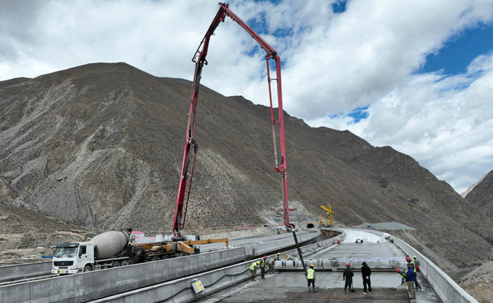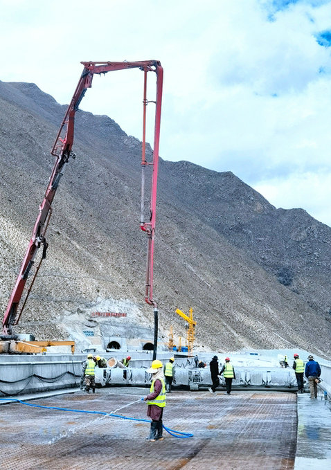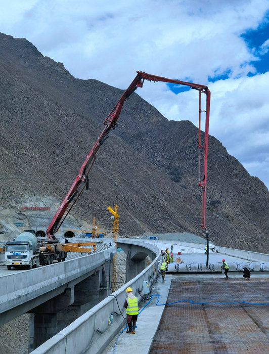鐵路工程建設(shè)網(wǎng)訊(通訊員馬軍鵬)中鐵十五局集團(tuán)雅葉高速拉日十標(biāo)項(xiàng)目雅魯藏布江大橋位于拉薩市尼木縣卡如鄉(xiāng)卡如村西側(cè)約700米,跨越雅魯藏布江。大橋?yàn)樽笥揖€分離式,單幅橋?qū)?2.75米,公路等級(jí)為高速公路雙向4車道,設(shè)計(jì)速度100km/h,車輛荷載等級(jí)為公路Ⅰ級(jí)。橋梁下部結(jié)構(gòu)采用柱式墩、實(shí)心薄壁墩、空心薄壁墩、雙肢等截面矩形實(shí)體薄壁墩,橋臺(tái)為樁柱式橋臺(tái),基礎(chǔ)結(jié)構(gòu)為樁基。左線橋梁全長734.5m,右線橋梁全長725.5m。其中主橋采用變截面預(yù)應(yīng)力混凝土連續(xù)剛構(gòu),兩岸引橋結(jié)合地形條件采用30m預(yù)應(yīng)力混凝土先簡支后橋面連續(xù)小箱梁和40m預(yù)應(yīng)力混凝土先簡支后橋面連續(xù)T梁。兩岸橋墩位于河谷兩岸陡峭的山坡上,墩身較高、現(xiàn)澆段跨度較大,安全風(fēng)險(xiǎn)較高。大橋與4月底架通,目前正進(jìn)行橋面鋪裝施工。