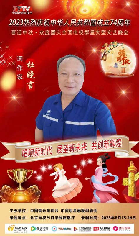 杜曉言,騰訊音樂人,書法愛好者,中國(guó)音樂著作權(quán)協(xié)會(huì)會(huì)員,中國(guó)音樂文學(xué)學(xué)會(huì)會(huì)員,中國(guó)職工音樂家協(xié)會(huì)會(huì)員,中國(guó)職工攝影家協(xié)會(huì)會(huì)員。1962年11月山東鄆城生人。1981年10月參加鐵道兵,1984年1月隨鐵道兵集體兵轉(zhuǎn)工,2023年2月退休,現(xiàn)定居濟(jì)寧市。迄今在《中央電視臺(tái)》《內(nèi)蒙古衛(wèi)視》《海南衛(wèi)視》《山西衛(wèi)視》《安徽衛(wèi)視》《河南衛(wèi)視》《菏澤電視臺(tái)》《武威電視臺(tái)》《廣西廣播網(wǎng)》《齊齊哈爾市人民廣播電臺(tái)》《寶雞市經(jīng)濟(jì)廣播電臺(tái)》《原兗州市人民廣播電臺(tái)》《騰訊音樂》《QQ音樂》《上海雨陌文化傳媒有限公司》等演唱作詞歌曲100多首。在《詞刊》《歌曲》《廣播歌選》《解放軍歌曲》《重慶音樂》《上海歌聲》等發(fā)表歌詞500多首,創(chuàng)作歌詞3000多首。作詞歌曲代表作《再唱天路》《枇杷熟了你沒有來》《你開心我快樂》《祖國(guó),我為你自豪》《生生死死都愛你》《遠(yuǎn)方的阿哥你好嗎》等,作詞歌曲《西雙版納的歌謠》《壯鄉(xiāng)三月春光美》等多首作詞歌曲改編葫蘆絲名曲廣為流傳,《我的中國(guó)》《祖國(guó),我為你自豪》《最暖的陽(yáng)光》等多首作詞歌曲參加文藝晚會(huì)并獲獎(jiǎng),《水鄉(xiāng)江南》《走壯鄉(xiāng)》等多首作詞歌曲收入大學(xué)音樂教材。與張雷雷、于天海等合作電影《落潮灣》主題歌《落潮灣戰(zhàn)事》,電視劇《蜀漢戰(zhàn)神傳》主題歌《英雄無淚》、電影《大漠較量》主題歌《駝鈴駱駝草》等多部影視劇主題歌。著有《情感家園》《心靈的旅程》《心中的祝福》《選擇美好》等多部歌詞專著。自學(xué)成才事跡在《人民日?qǐng)?bào)》《工人日?qǐng)?bào)》《百度新聞》《中視網(wǎng)》《中國(guó)鐵道建筑報(bào)》等主流媒體報(bào)道~~