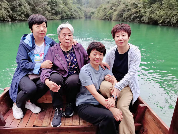 路橋公司財務(wù)部會計孔祥云三姐妹和母親游玩時合影,左一是孔祥云,左二孔祥云的媽媽