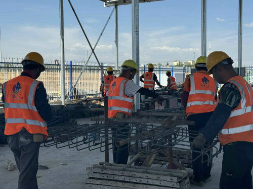 圖為兵團建工水電集團市政路橋公司第二筑路項目部預制蓋板鋼筋加工現(xiàn)場。工人們在酷暑的熱浪下如火如荼的加工鋼筋,為蓋板涵的施工提高施工效率、減少施工過程中的誤差,截至目前儲備鋼筋約80余噸、預制蓋板約百余塊。(汪文娟攝)