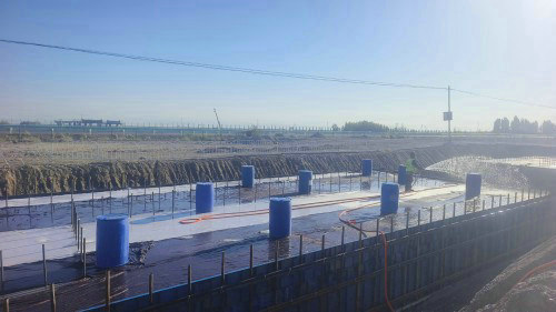 圖為新疆兵團建工水電集團市政路橋公司第五師雙河市G577沙山子-G219線公路(互通立交工程)主線大橋k8+175.500左幅0#承臺混凝土灑水養(yǎng)護。(王小丫 攝)