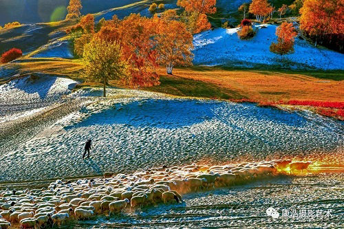 一夜秋風(fēng)千山披霞,一夜秋風(fēng)萬水綠透,一夜秋風(fēng)金銀滿溝,紅風(fēng)飛舞滿天飄金的時(shí)節(jié)。