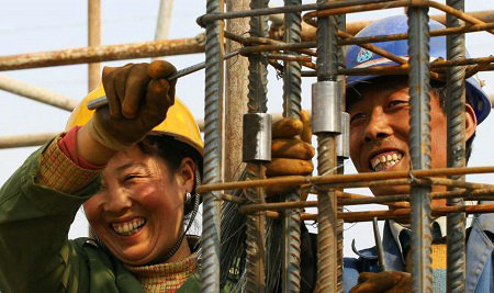 我國現(xiàn)有農(nóng)民工數(shù)量超兩億,已成為各類企業(yè)和城市群體中的重要組成部分,他們是社會主義建設的主力軍。因文化知識偏低,勞動技能不高,所從事的勞動多是施工一線的苦、臟、累活兒。下面是筆者無意間用數(shù)碼相機拍攝的幾對農(nóng)民工夫妻共同勞動的場景,并附順口溜式詩歌以贊美之: