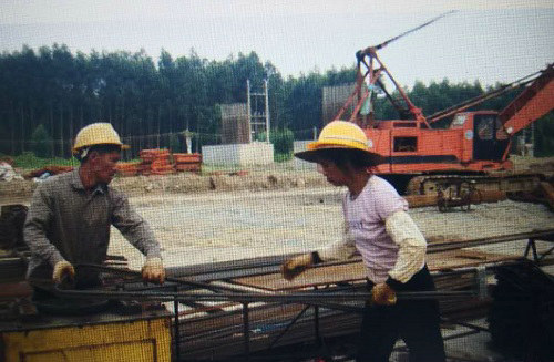 我真不想用“黑牡丹”這個詞來形容她們,但我又找不到更為恰當(dāng)?shù)脑~語來贊美她們,施工現(xiàn)場的風(fēng)吹日曬,給她們臉上涂抹的就是日漸變黑的大自然牌“化妝品”。這照片上的四個姐妹,從左向右依次為農(nóng)瑞娟26歲、黃光邊39歲、農(nóng)桂洪46歲、何文波25歲。她們從云南來工地快半年了,除了下雨天不施工外,很少有人缺勤。