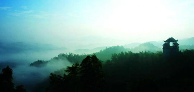 青松挺拔芭蕉嶺,云霧環(huán)抱轎頂巖。