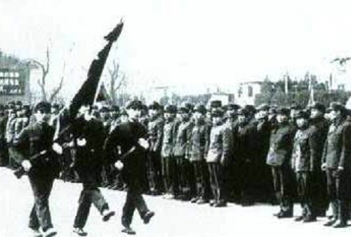 注:本詩寫于1981年3月29日,剛成鐵六師三十團合并到新五師二十二團不久,從和靜縣遷到新疆庫爾勒市北站道碴場的89322部隊5連。當時聽說要轉(zhuǎn)工了,軍容比較渙散,所以部隊搞了一次再向軍旗宣誓儀式。