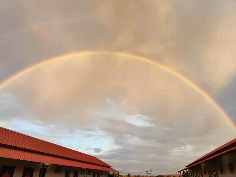 又是這樣一個平淡的早晨,我來到這里工作已經(jīng)7個月了,每天都是這樣,似乎和往常沒什么不同,可是又有一些不同。抬頭一看,喔,好美的一道彩虹,不偏不倚,正好在我頭頂。之前,雖然也見到過彩虹,但早上六點鐘的彩虹還是第一次見,它是那么的美麗,那么的充滿活力,讓人不由得駐足觀看。不得不說,能看到這么美好的一幕,讓我的心情瞬間美麗了起來。