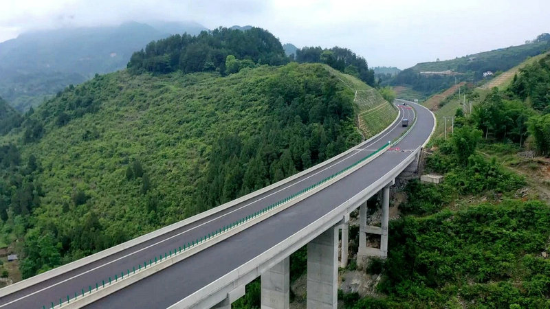 甕開高速,巍巍黔嶺,黔南之星光。祥瑞挾時風,神州之靈羽。看今朝,銀龍翔大地,玉帶繞黔山。東賞亞洲磷倉甕安也,觀千年古邑,悟猴場會議,西品開陽布依苗鄉(xiāng),游名勝古跡,覽民族風情。氣勢恢宏兮,林木歡笑,神姿峻偉矣,天地激昂。翡翠盈窗,青綠藍天共色,琳瑯載道,青峰碧野同翔。百姓歡騰載舞,東風浩蕩,一條精準扶貧路,鴻福綿長。辛丑通車獻黨辰,厚禮重重謳百載。