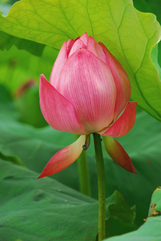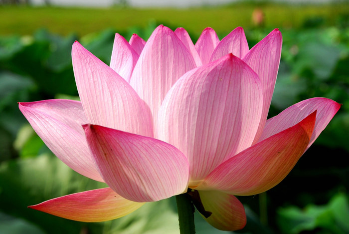 夏天是荷花盛開(kāi)的季節(jié)。荷花是一種水生花卉,根系橫向生長(zhǎng),扎根在河塘的淤泥之中。長(zhǎng)出水面的莖干筆直渾圓,葉片呈圓形,碧綠色,大小在25-90厘米之間。荷花的直徑在10-20厘米之間,有粉、紅、白3種顏色,花瓣脈路清晰,花蕊為金黃色,非常美麗。它通常在春季生根、發(fā)芽,然后在夏季逐漸長(zhǎng)大。