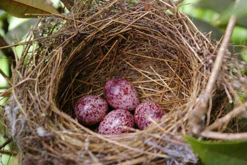 家鄉(xiāng)駝梁山森林覆蓋率高,自然環(huán)境好,適宜多種動(dòng)物繁衍生息。初夏是喜鵲、麻雀、野雞等各類飛禽繁殖的高峰期,所以它們未等天氣轉(zhuǎn)暖便開始在高大的樹上和草叢里的隱蔽處筑巢,為繁衍后代提供安穩(wěn)、舒適的條件。我們村里的男孩子,對(duì)樹上、灌木叢里的鳥窩很感興趣,都想從窩里掏幾個(gè)鳥蛋,回家炒著吃。樹上的鳥窩一般專屬喜鵲和老鷹,外形比籃球大,暴露在光天化日之下,數(shù)百米、一兩公里外便可看到。它們以為人類沒有其飛翔的本領(lǐng),所以很自信地在松樹、楊樹或者樺樹的樹冠上建家,過上安穩(wěn)的日子,殊不知,它們太天真,醒目的巢穴容易被人類或者別的物種光顧,遭遇厄運(yùn)在所難免,做媽媽的夢(mèng)想破滅。喜鵲、鷹建造一座房子需要幾個(gè)月時(shí)間,比人類蓋房還要辛苦。人們發(fā)現(xiàn)哪棵樹上有鳥窩,大孩子們便爭(zhēng)先恐后地往樹上爬,即使衣服被樹皮劃破,挨大人一頓打罵也不在乎,只要能弄到鳥蛋。這種帶有野性的頑皮,山里孩子身上普遍存在。當(dāng)然樹上掏鳥蛋不是每回都那么幸運(yùn),因?yàn)樘鞌程啵续B窩便有不速之客造訪,捷足先登者為勝。有一次村里一個(gè)大孩子興致勃勃地爬到后山的一棵樺樹上掏鳥蛋,以為勝利的果實(shí)即將到手,準(zhǔn)備伸手進(jìn)去時(shí),先瞪大眼睛窺探了一下里面,嚇得大驚失色,尿了一褲子,連屁都放出來了!里面竟然盤著一條大蛇,正朝著他張望呢!這個(gè)意外嚇壞了許多想掏鳥蛋的孩子,后來沒人敢上樹掏鳥蛋了,喜鵲和鷹過上了安穩(wěn)日子。