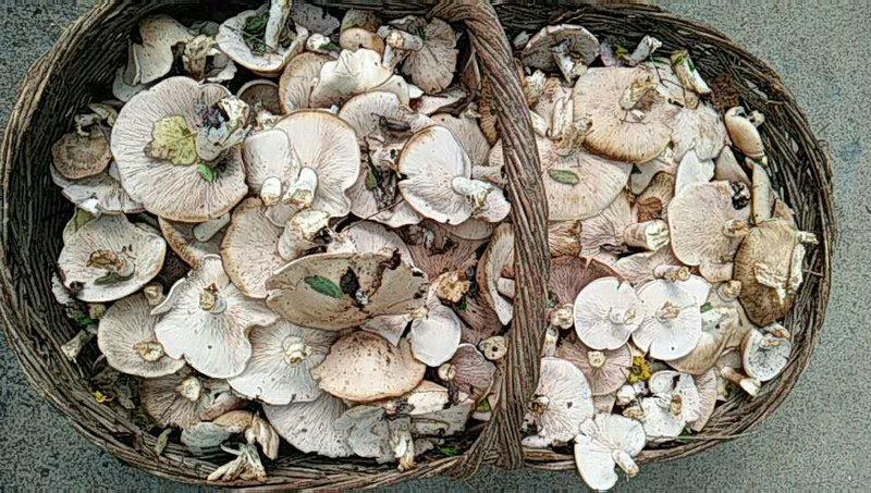 家鄉(xiāng)的駝梁山,自然資源豐富,多年來,鄉(xiāng)親們依靠資源改善貧窮的生活現(xiàn)狀。野生蘑菇是山里常見的一種山珍,備受人們的青睞。野生蘑菇又稱野生菌,種類多,白銀盤、紅銀盤、香心、羊眼、華林、雞腿、地雞、地花等等。每年的8月上旬到9月上旬,是野生蘑菇生長(zhǎng)的季節(jié)。駝梁山地區(qū)上半年雨水少,下半年雨水多。松、樺、楊、柳等叢林間年復(fù)一年,積淀了厚厚的落葉,在充足的雨水浸潤(rùn)下,下面的腐爛后變成黑色的泥土,上面是近兩年落的葉子。由樹葉蛻變的泥土,適宜自然生長(zhǎng)菌類植物,不同的樹林生長(zhǎng)著不同的蘑菇。五六年以前,人們還沒意識(shí)到野生蘑菇有抗癌、降壓、長(zhǎng)壽等功效,所以山里的蘑菇基本都是村里人去采,吃獨(dú)食,哪一家院子里都晾曬著一大片蘑菇,被晾干的蘑菇總有一二十斤,送親友、炒菜、燉菜、蘑菇炒面、賣錢等等,都能派上用場(chǎng),沒覺得有什么可貴之處。我在家鄉(xiāng)生活16年,大概七八歲起,到了野生蘑菇收獲的季節(jié),便跟著大人或與哥哥姐姐們一道進(jìn)山里采,有時(shí)一個(gè)上午便能采到幾十斤。蘑菇味道鮮美,10多米外便能嗅到其獨(dú)特的香味。下雨天蘑菇長(zhǎng)得快,今天林中看不到蘑菇的蹤影,一場(chǎng)夜雨便長(zhǎng)出10多厘米高的蘑菇,他們排成曲曲彎彎的一兩米、兩三米長(zhǎng)的陣形,像打傘的一群孩子,十分可愛。所以村