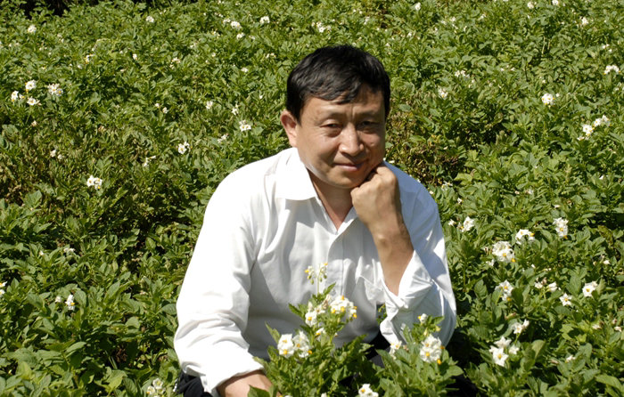作者在開花的山藥地里