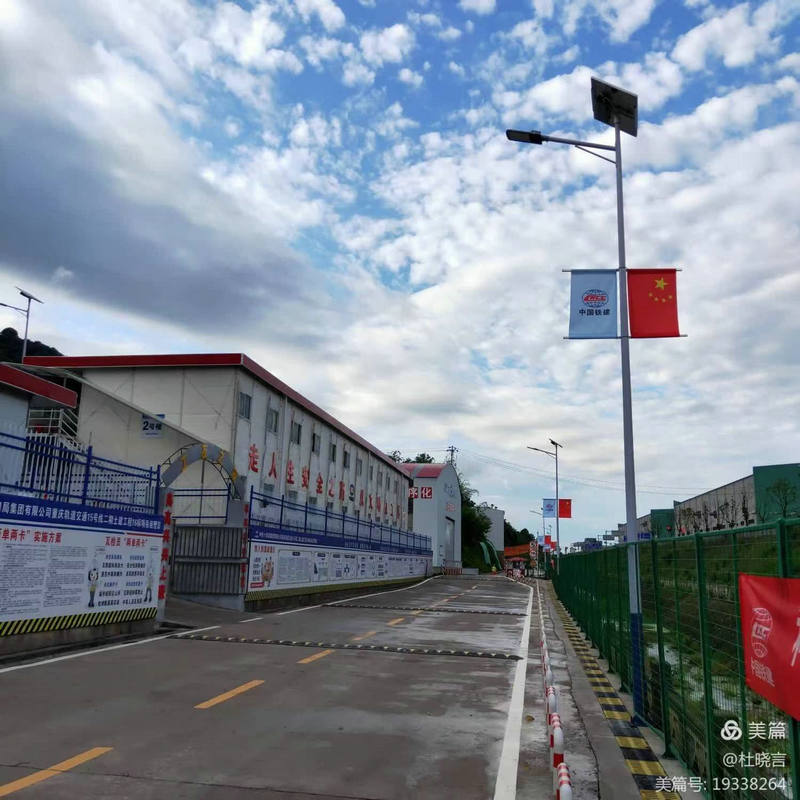 施工便道真奇怪,路燈彩旗掛滿(mǎn)街。