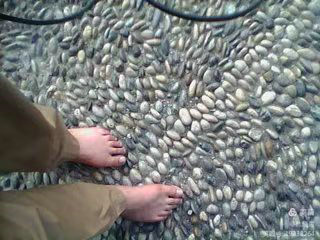 今年6月初,隨項目從榆次轉(zhuǎn)場搬遷太原柴村,一天早上散步時發(fā)現(xiàn),附近一家單位的草坪有個圓型的鋪滿鵝卵石的小路,我想人的器官感覺都在腳板上,何不赤腳在上面走走鍛煉鍛煉。