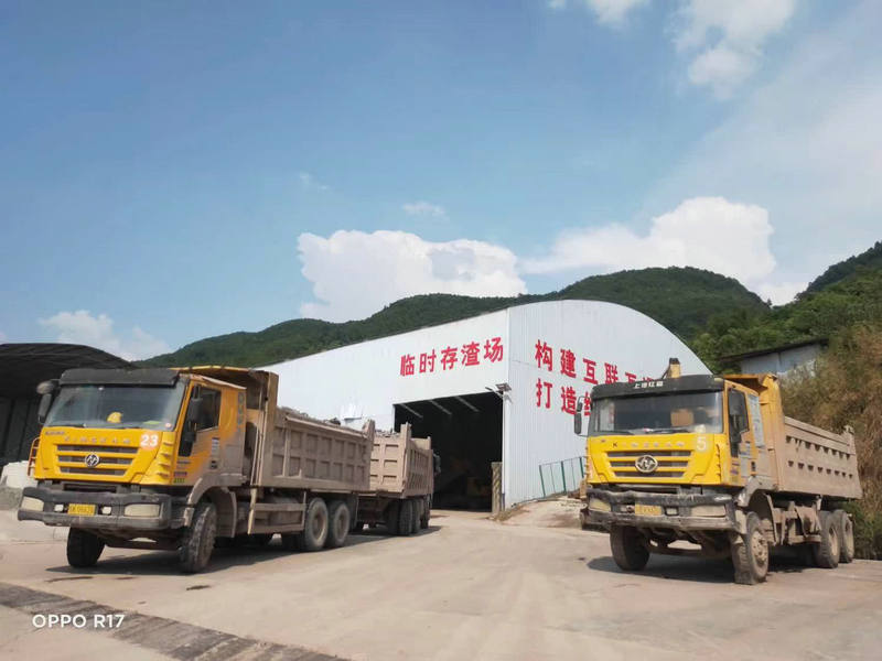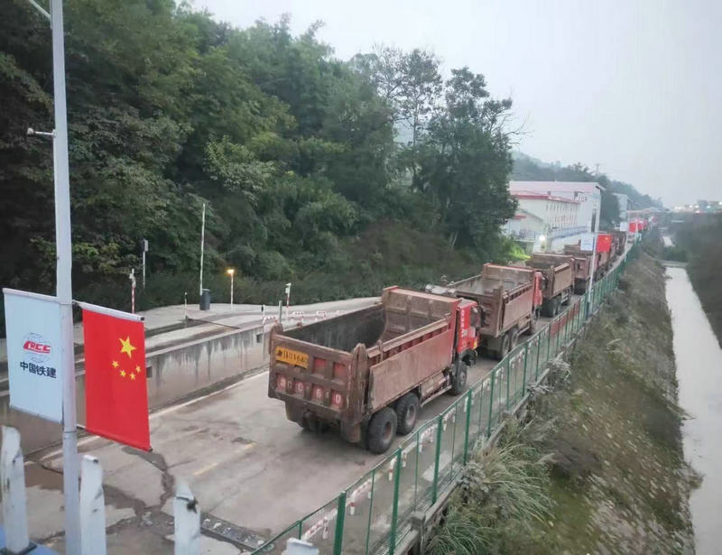 “雙節(jié)”期間,中梁山隧道出口運輸棄渣車排隊外運