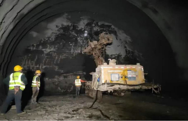 “雙節(jié)”期間,中梁山隧道出口施工熱火朝天