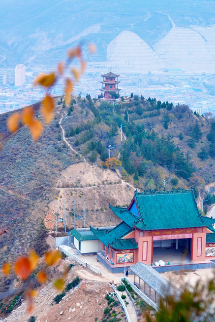 桃花山是黃土塬的骨架。山不高,卻布滿當年紅軍會師時留下的腳步,告誡著后人們不忘初心、牢記使命。道旁的幾棵不知名的樹把枝丫伸得老長,紅透的果子墜在黃土地上,像撒了把碎瑪瑙。山腰處聳立著遵義會議、鐵索橋、瓦窯堡會議等幾處長征途中的仿形建筑,仿佛時刻訴說著如今幸福生活的來之不易。