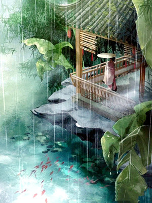 雨珠踩著瓦當(dāng)?shù)那冁I