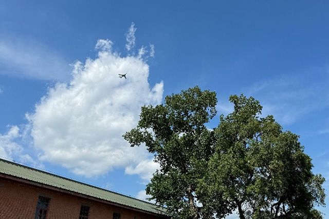 站在遺址的石子路上,一架飛機正劃破湛藍的天際,機翼拖曳的白色尾跡與遠處林立的現(xiàn)代化樓宇形影成景,此刻和平的輪廓變得如此清晰而具體。這穿梭云端的航跡,這燈火璀璨的都市,都是對那段黑暗歷史最有力的反駁。